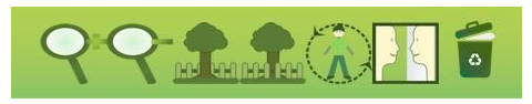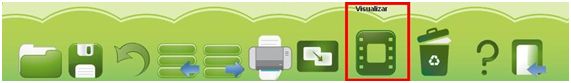 O menu de imagens oferece sete opções de modificação, organizadas da esquerda para direita na seguinte ordem: aumentar ou diminuir imagens, deslocar a imagem para frente ou para trás, girar ou espelhar imagem e excluir.